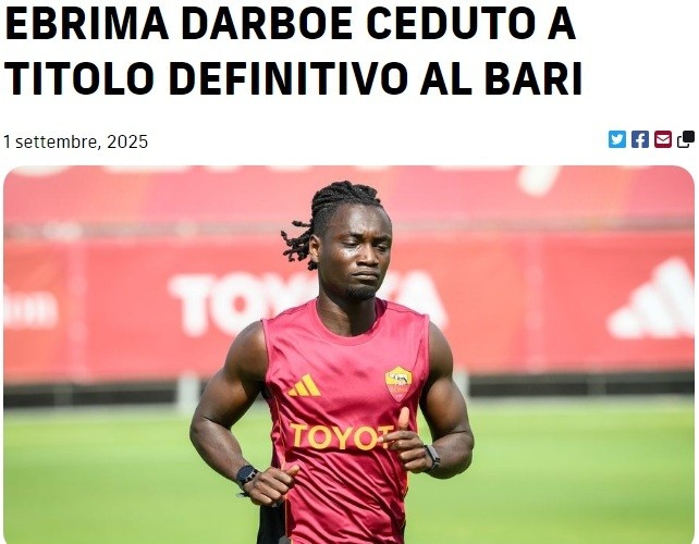 现年24岁的达尔伯是冈比亚国脚,上赛季在意乙联赛为弗洛西诺内出场26次,打进2球助攻1次。今夏达尔伯还参加了罗马一线队的季前集训。