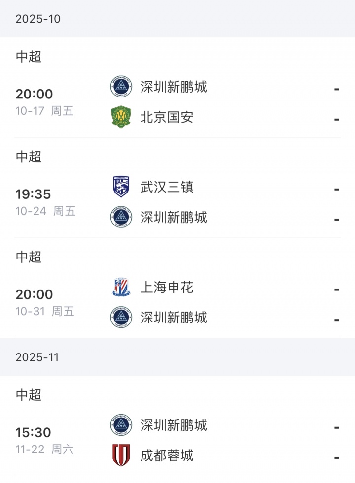 新鹏城未来赛程↓